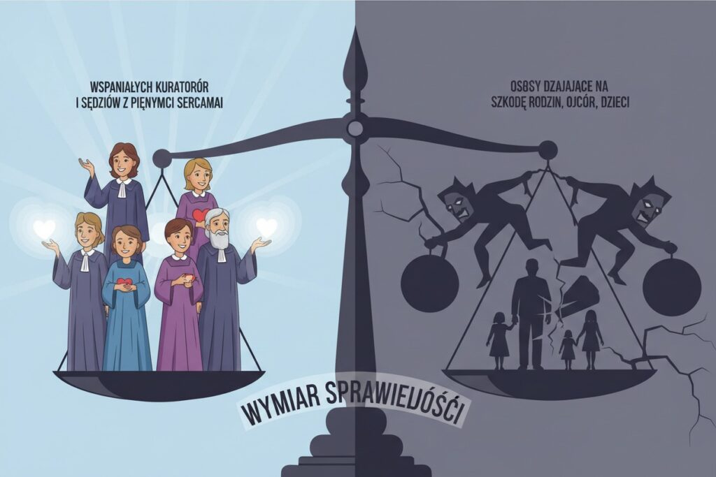 Wymiar sprawiedliwości to wspaniali kuratorzy z ogromnym doświadczeniem, sędziowie, którzy maja piękne serca ale tam też są osoby, które działają na szkodę rodzin, ojców, naszych dzieci.